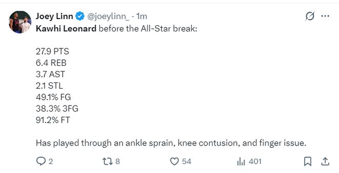NBA记者Khalil Zaabri赛后写道:卡哇伊打出了职业生涯最高光的一个赛季,但快船管理层那些蠢材却送走了多位核心球员,这简直太荒唐了。