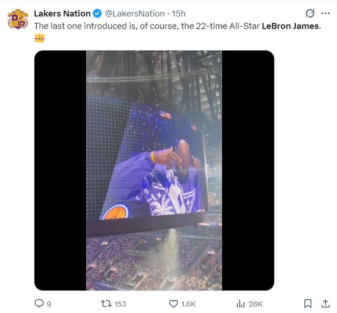 北京时间2月16日,勒布朗-詹姆斯连续22年登上全明星的舞台,在现场DJ介绍勒布朗-詹姆斯时老詹为自己戴上了皇冠,LA的球迷们为41岁的老球王疯狂的呐喊。41岁的勒布朗是以替补的身