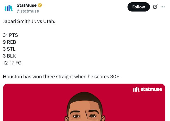 凭借这一场胜利,火箭队战绩提升至35胜21负,成功反超掘金队升至西部第三,同时将领先湖人与森林狼的胜场差扩大到1个胜场。