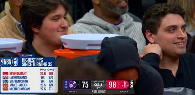 相比于送出12次助攻创新高,本场比赛对于火箭和杜兰特更加利好的是这名37岁的老将终于变相划水休息了一场。
