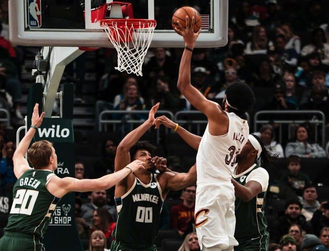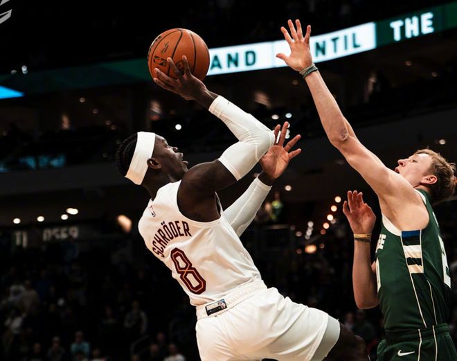 第一节两队打成33平,进入第二节,克雷格波特带队继续内突外投,雄鹿则在特纳和吉昂带领下追平。两队衔接段都没有防守,打得倒也很好看。中段阿伦抛投,施罗德把握住空位三分机会,但雄鹿这边三分球确实准,AJ格林和特纳都在外线发炮,好在阿伦连续吃饼得分,节末阿伦甚至自己运球突破勾手,打成小姚明了!加上施罗德的强攻,半场骑士63-62领先雄鹿。进入第三节,特纳外线开火,库兹马喂饼小波特后,又连中三分球,分差瞬间到两位数。关键时刻泰森和克雷格波特连续强攻,但特纳三分也很准。