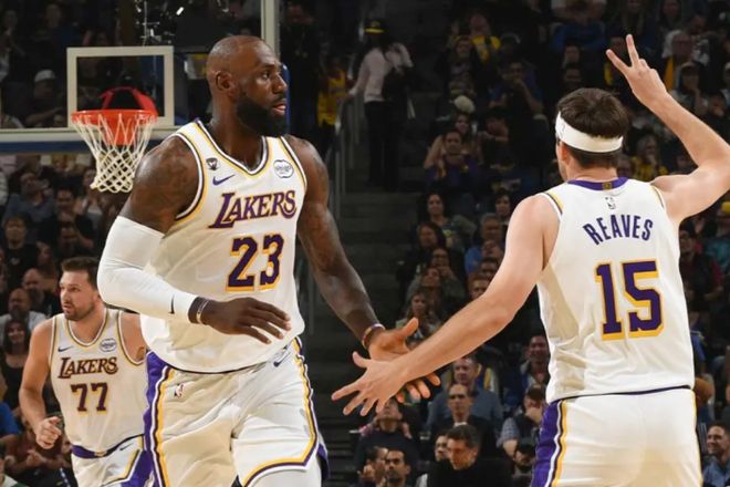 第三节回来,东契奇也连中三分,艾顿转身小勾手打进。追梦格林空位三分偏的没边,东契奇又开始下三分雨。中段拉拉维亚和里夫斯也外线发炮,湖人最多拉开27分差距。后半段桑托斯连续追分,但里夫斯带着海斯连续回应。节末肯纳德中投+拉拉维亚快攻上篮,霍福德三分球止血,三节打完,湖人99-72领先。第四节俨然失去悬念,最终湖人129-101大胜勇士。湖人数据,詹姆斯22分7篮板9助攻,艾顿4分10篮板,里夫斯18分3助攻,东契奇26分6篮板8助攻,肯纳德16分3篮板3助攻,斯玛特8分5篮板,海斯6分5篮板。