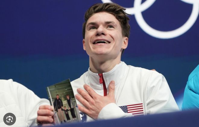 2026年1月,美国花样滑冰锦标赛。Maxim站上了领奖台,这次他拿到了铜牌。连续三年第四之后,他终于突破了。