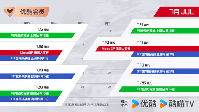 专属「赛车观赛日历」同步上线,邀您锁定优酷体育,见证赛道上的速度对决、科技突破与热血坚守,让每一份热爱,都在引擎轰鸣中尽情释放!