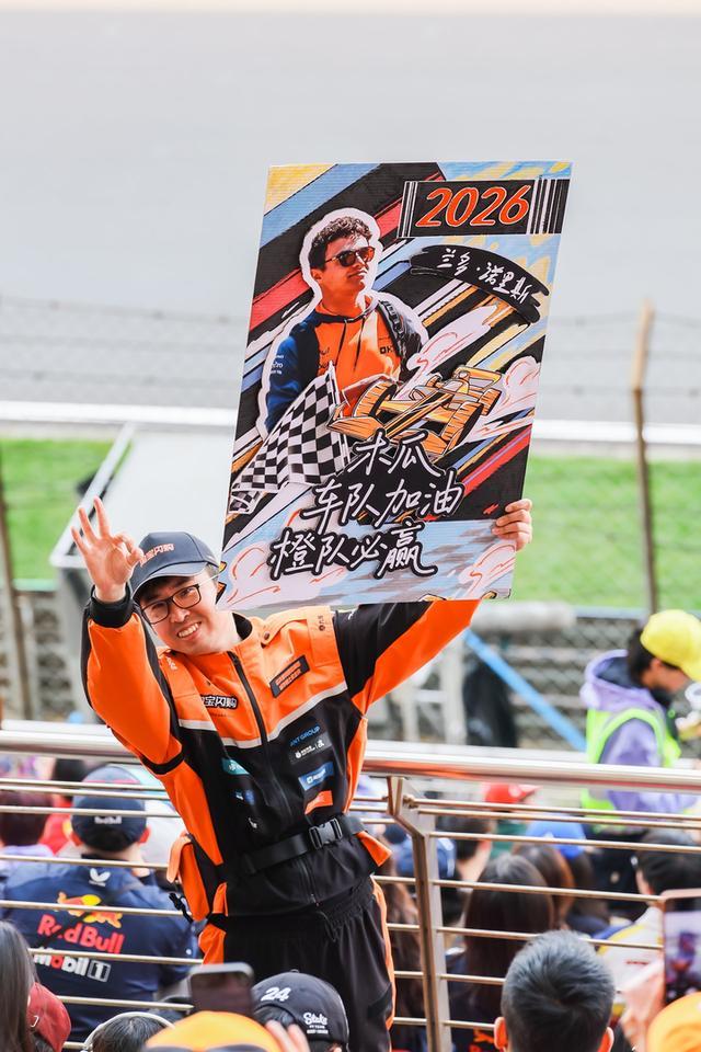 有趣的是,不少骑士本身就是“资深车迷”。研究生毕业的骑士张贝贝是麦克拉伦车队车手兰多·诺里斯的粉丝,他特意制作了应援画。“我们的工服颜色和麦克拉伦的橙色非常接近,感觉特别亲切。”