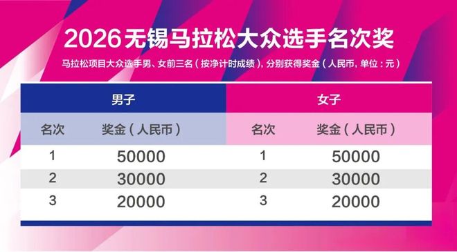 另外,无锡还首次设立大众跑者奖项,冠军大奖是国内冠军的一半:5万元。诚意足够。
