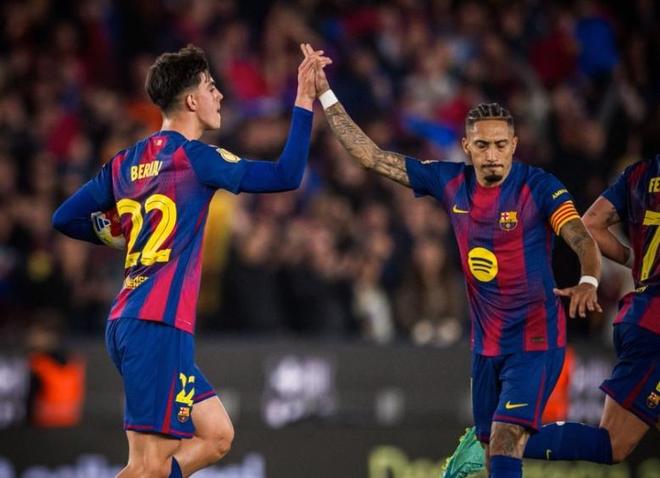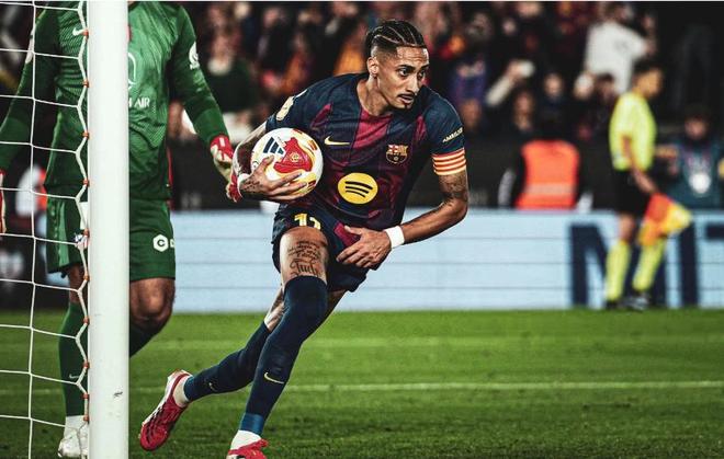 狂攻不止的巴塞罗那,在第29分钟打破了场上的平衡,亚马尔左路下底传中,贝尔纳尔门前包抄建功,帮助巴萨取得了1-0的领先,半场比赛结束之前,佩德里禁区内被铲翻,为巴萨赢得一粒点球,拉菲尼亚主罚命中,巴萨带着2球的领先,回到了中场更衣室。