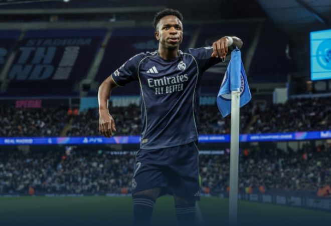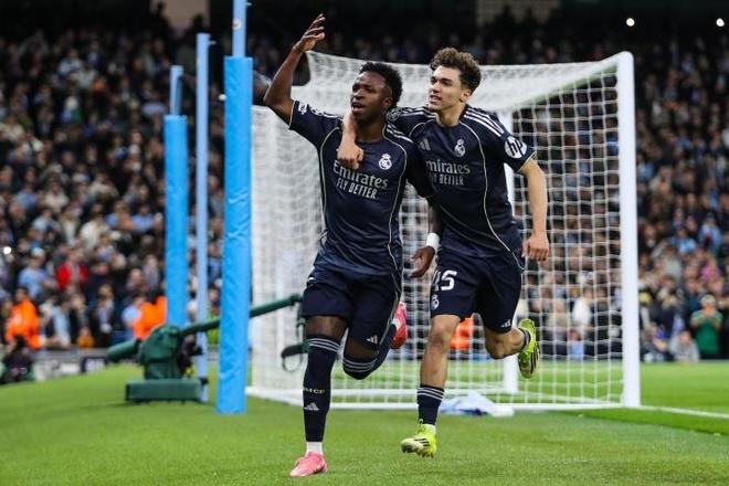 首回合皇马已在主场 3-0 占据巨大优势。次回合上半场,B 席染红离场且手球送点,点球破门,随即为曼城扳平比分;下半场伤退,替补复出,维尼修斯在补时阶段再入一球完成梅开二度。