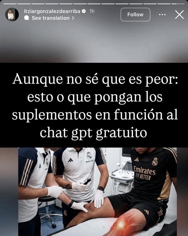 前皇马营养师Itziar Gonzalez透露,皇马队医曾根据免费版AI的建议给球员安排补充剂。据此前消息称,在对姆巴佩的伤情进行最初检查时,皇家马德里医疗团队检查错了膝盖。他们本应