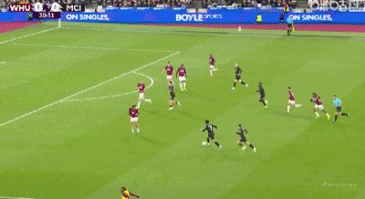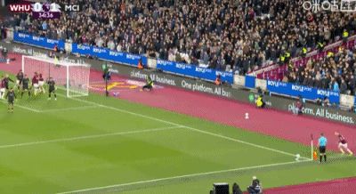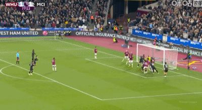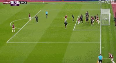第31分钟,B席禁区左路吊射破门,曼城1-0西汉姆联