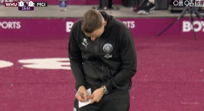 第27分钟,表情有些纠结,瓜帅助理教练林德斯场边记录