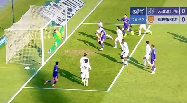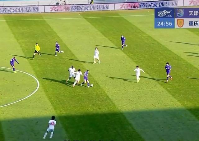 重庆铜梁龙对战天津津门虎。比赛画面截图